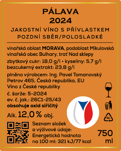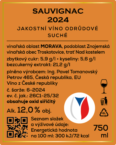 Aromatický Sauvignac z pozdního sběru. Polosuché víno ze znojemské podoblasti.